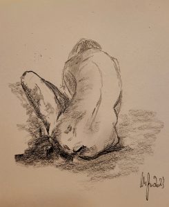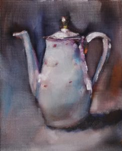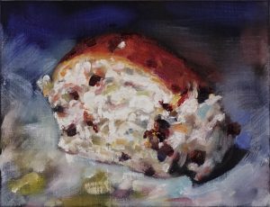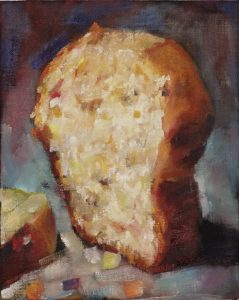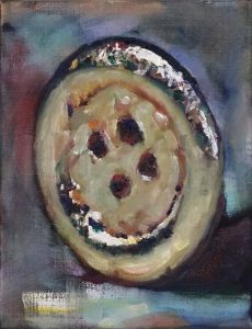 Klaus schafft in seinen Werken Momentaufnahmen nicht nur auf Leinwand, sondern auch in seiner Wortkunst. Die Emotion, die seine Bilder in mir auslösen, ist oft von Melancholie geprägt, seine Bilder erinnern mich – und ich muss für die Lesenden hier klarstellen: ich habe keine Ahnung von Kunst – manchmal an alte Meister und ihre Stillleben. Es sind Momentaufnahmen von Dingen, die schon im nächsten Moment, spätestens in den nächsten 24 Stunden, so nicht mehr aussehen werden. Eine Gabel, die auf einem Tisch liegt, wird weggeräumt werden, ein Brot wird vertrocknen, ein Bonbon gegessen werden. Klaus Sievers ist jemand, der in seiner Malerei alltäglichen Dingen Raum gibt, der in seiner Kunst den Moment, den Augenblick verewigt.